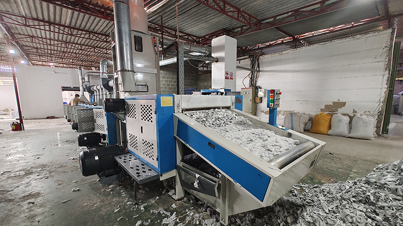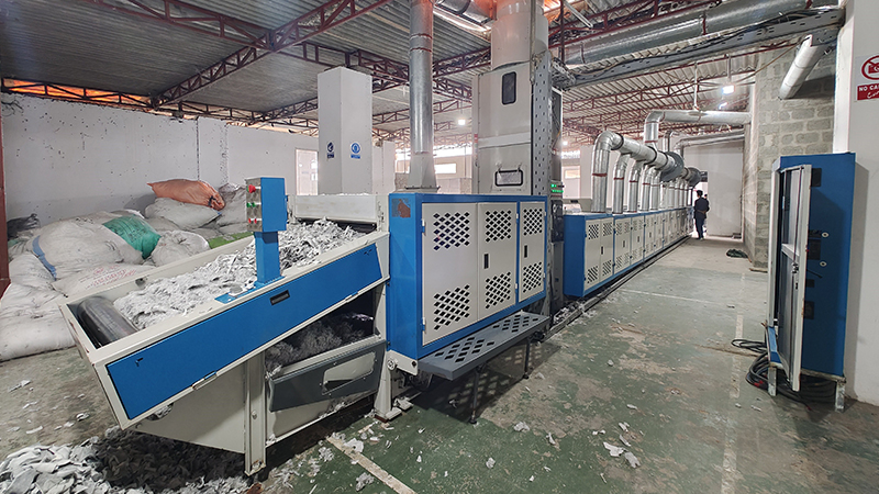 The knitting fabric recycling production line can recycle knit, lycra,Polyester etc textile waste that are more difficult to open.